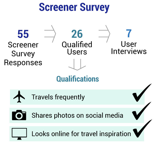 We needed more users though, so we posted a screener/research survey which received 55 responses. From these we contacted 7 for in-depth interviews.