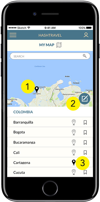 Maps are meant to be central to HashTravel. We examined the many versions of travel maps that we found online, looking for ideas to make a travel community more visual and fun. How could we take advantage of new mapping technologies to create map-centered pages that keep users exploring?